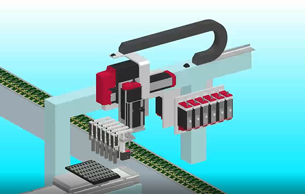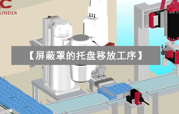 通過(guò)水平多關(guān)節(jié)機(jī)械手進(jìn)行工件的托盤(pán)移放。