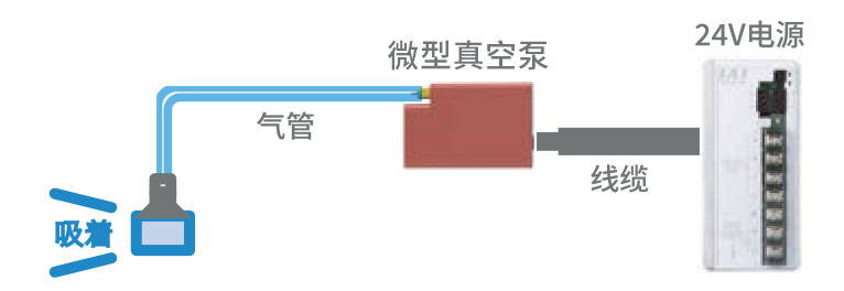與手差不多尺寸的ROBOPUMP并不會占用很多空間。本體內(nèi)部包含電磁閥和壓力傳感器,非常適合輕量物品的吸附。